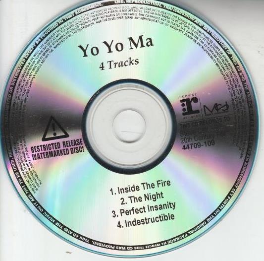 Yo Yo Ma: 4 Tracks PROMO MUSIC AUDIO CD Yo-Yo Inside Fire Night Perfect Insanity