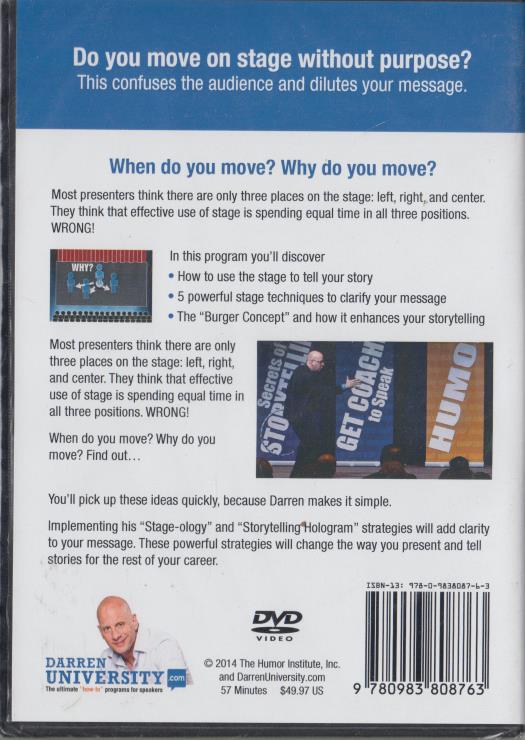 You'll pick up these ideas quickly because Darren makes the concepts simple and practical. Implementing his 'Stage-ology' and 'Storytelling Hologram' strategies will add clarity to your message. These powerful techniques can change the way you present and tell stories for the rest of your career.