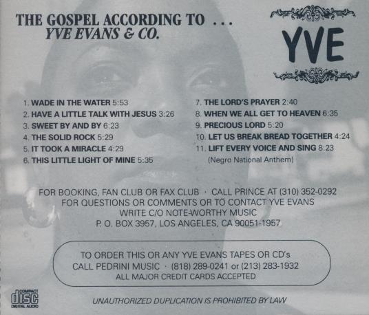 YVE EVANS & CO: THE GOSPEL ACCORDING TO...