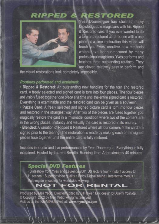 Yves Doumergue's Ripped & Restored DVD VIDEO MAGIC card tricks teaching SEALED